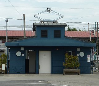 上信電鉄デキ1形電気機関車をかたどったトイレ。