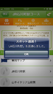 JR東日本八王子支社によるアプリで、、チェックポイントにてGPSで位置情報を取得しながら、